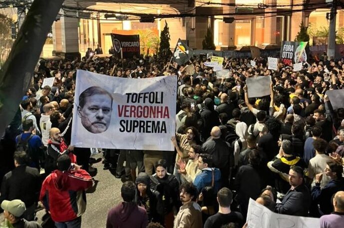 Manifestação diante do Master grita Fora, Toffoli e pede delação