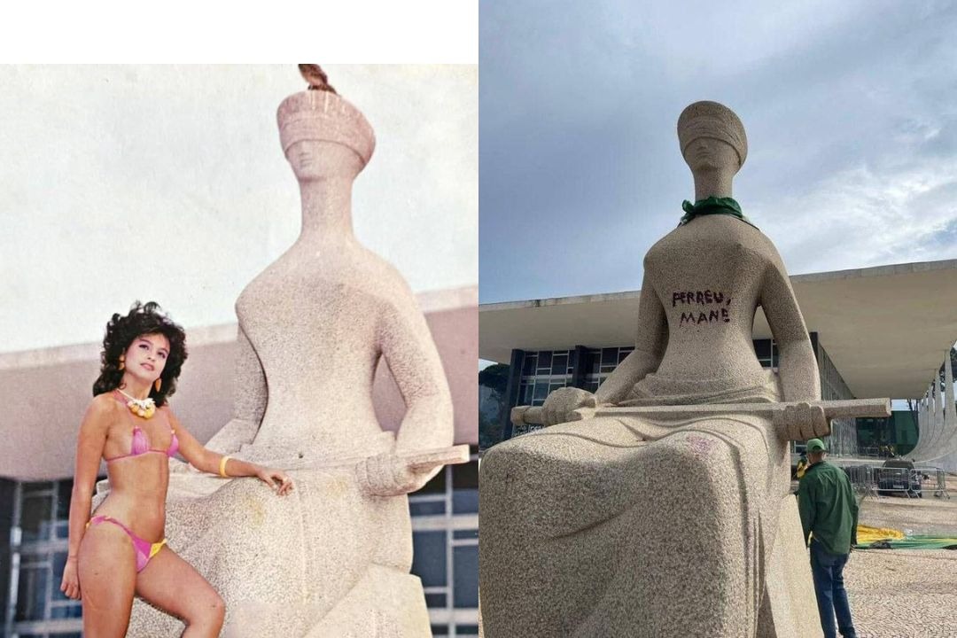E agora Moraes? Estátua do STF já foi usada por modelo vestida de biquíni