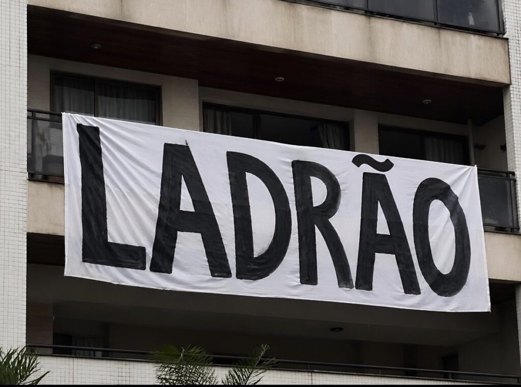 Ele colocou uma faixa com a palavra “ladrão” na sacada do seu próprio apartamento, sem mencionar o petista.